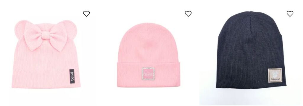 – широкий ассортимент фасонов — от классических вязаных моделей до современных шапок-бини и комплектов с шарфами;